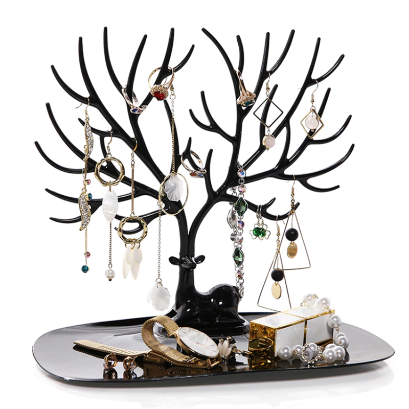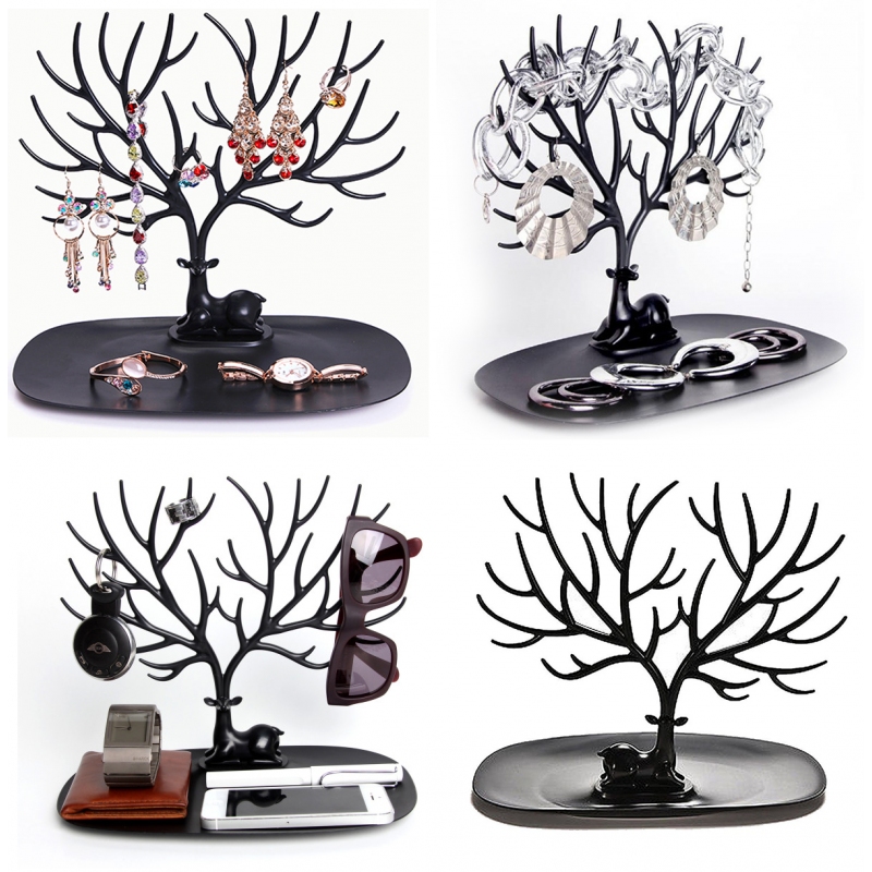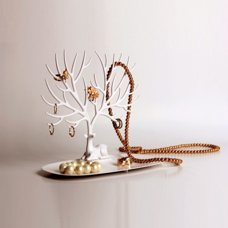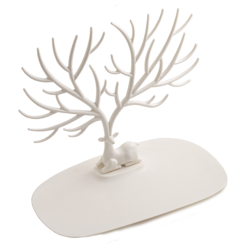 Стильное украшение в виде оленя с ветвистыми тонкими рогами-короной не только оригинально дополняет ваш интерьер, но и служит вполне приземленной практической цели – держит на своих многочисленных ответвлениях и отростках всевозможные браслеты, кольца и ожерелья. Все они при хранении таким образом не теряются и не ломаются, будучи при этом всегда на виду и под рукой.