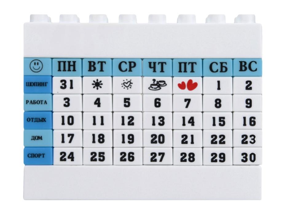 Когда хочется, чтобы каждый день был особенным, чтобы сам календарь подчинялся вашему желанию, приходит звездный час календаря-конструктора LEGO. Из кубиков, входящих в набор, вы составите расписание дней по своему усмотрению и сможете его в любой момент переделать или разобрать. Различные кубики помогут отметить значимые дни вроде дней рождения, встреч, выходных и поездок. Оригинальный календарь будет отличным подарком, а также неплохим антистрессом.