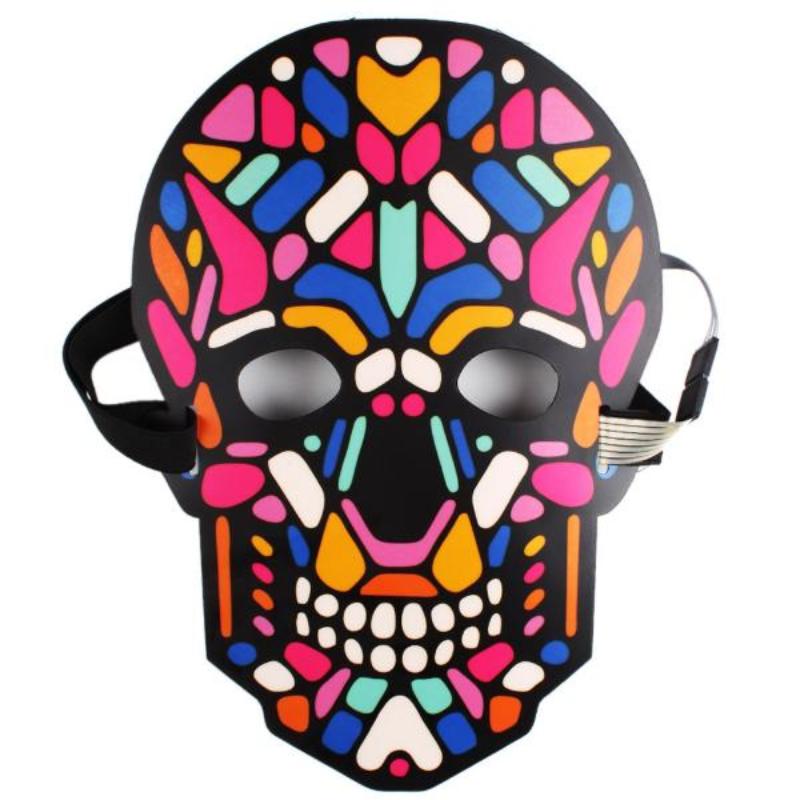 | Особенности | светодиодная маска состоит из фосфорных чернил, материал потребляющий минимальную мощность, холодный на ощупь и излучающий привлекательное свечение. Модуль маски преобразует звуковые волны в запрограммированный рисунок, излучающий чистый органический свет. |