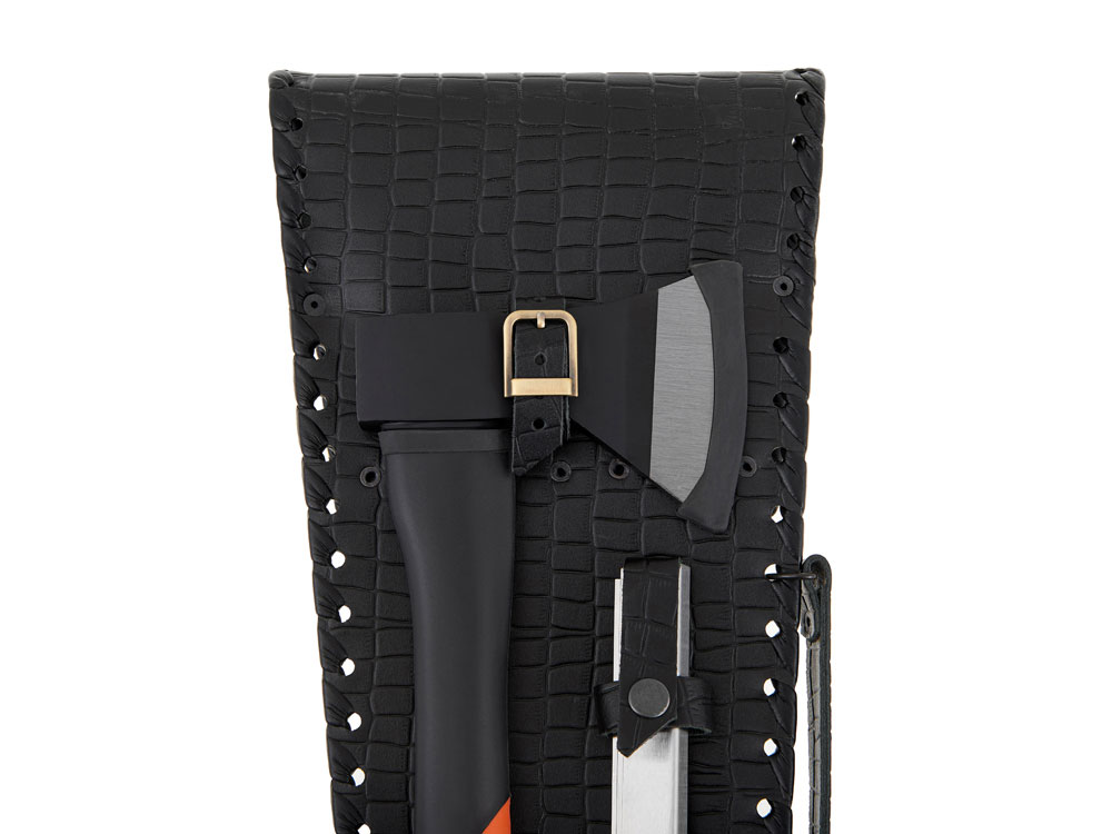 Набор для пикника в кожаном чехле ручной работы. В комплект входит: Тарелка 700 мл d16 х 6,4 см - 6шт Стопка d5,3 х 5,7 см - 6шт Нож 25,7 х 3,6 х 2 см - 1шт Ложка 19,3 х 4,5 х 2,7 см - 6шт Вилка 19,3 х 2,5 х 1,7 см - 6шт Топор 39,5 х 14,5 х 3,2 см - 1шт Ножки для мангала 50,5 х 31 х 1 см - 2шт Шампур d2,6 х 66 см - 6шт