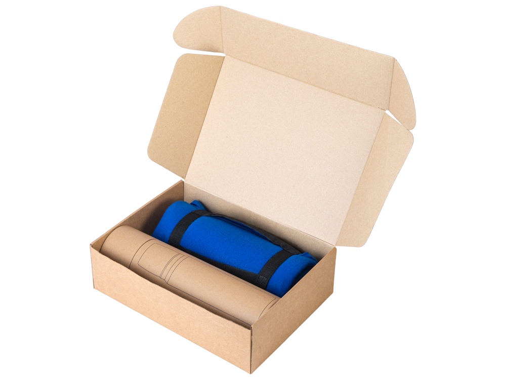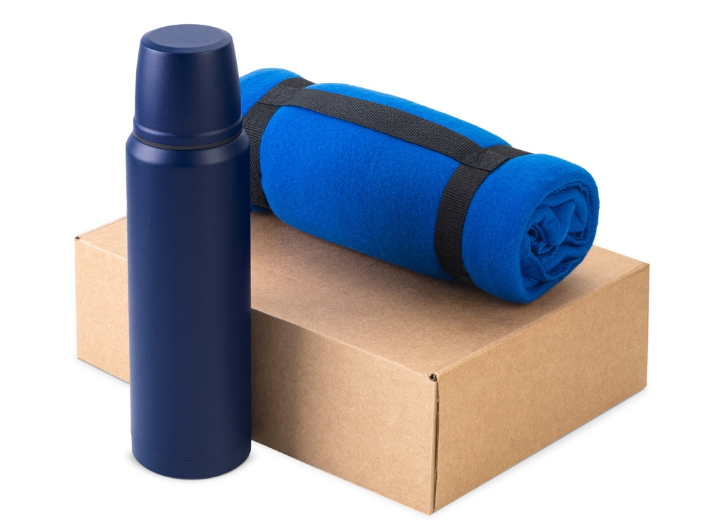 Набор из термоса и пледа поможет легко и удобно организовать пикник. Вакуумный термос имеет медную изоляцию между стенками, которая позволяет сохранять температуру напитков дольше аналогов. Крышка также может использоваться как чашка. Плед из мягкого флиса приятен в использовании. Благодаря специальным ремешкам его удобно хранить в свёрнутом состоянии. Плед имеет ручку для комфортной транспортировки. • термос держит тепло 50 ч • размер пледа: 127 х 152 см; • набор упакован в коробку, которую также можно брендировать.