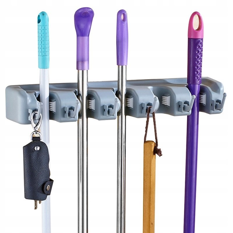 Держатель для пяти хозяйственных принадлежностей (43 см) поможет вам держать в порядке всевозможные швабры и щетки, а не складировать их в углу. Удобно подвешенные на стене, они будут занимать меньше места и будут смотреться более аккуратно, находясь всегда под рукой.