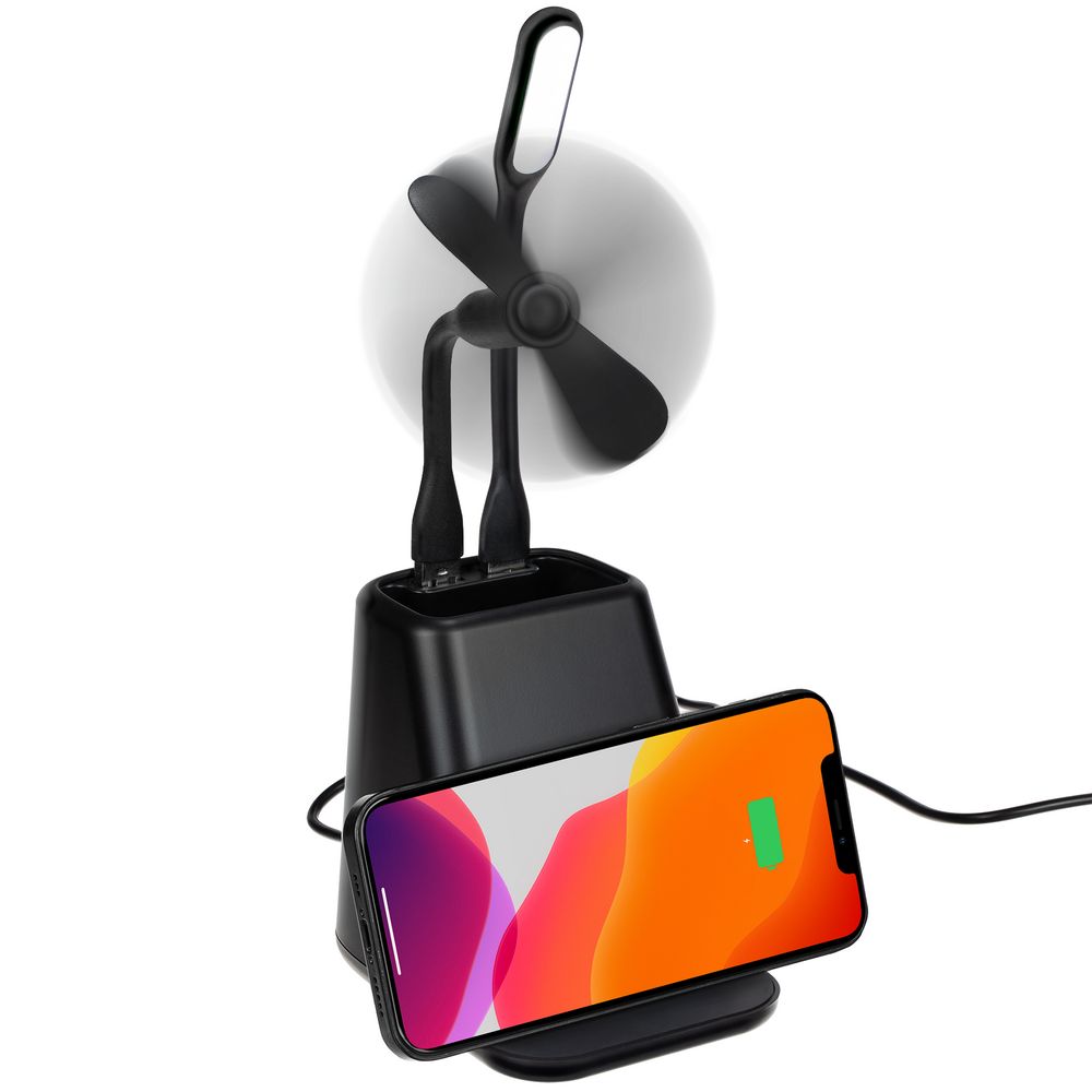 Настольный органайзер с зарядкой, лампой и вентилятором powerTower, черный