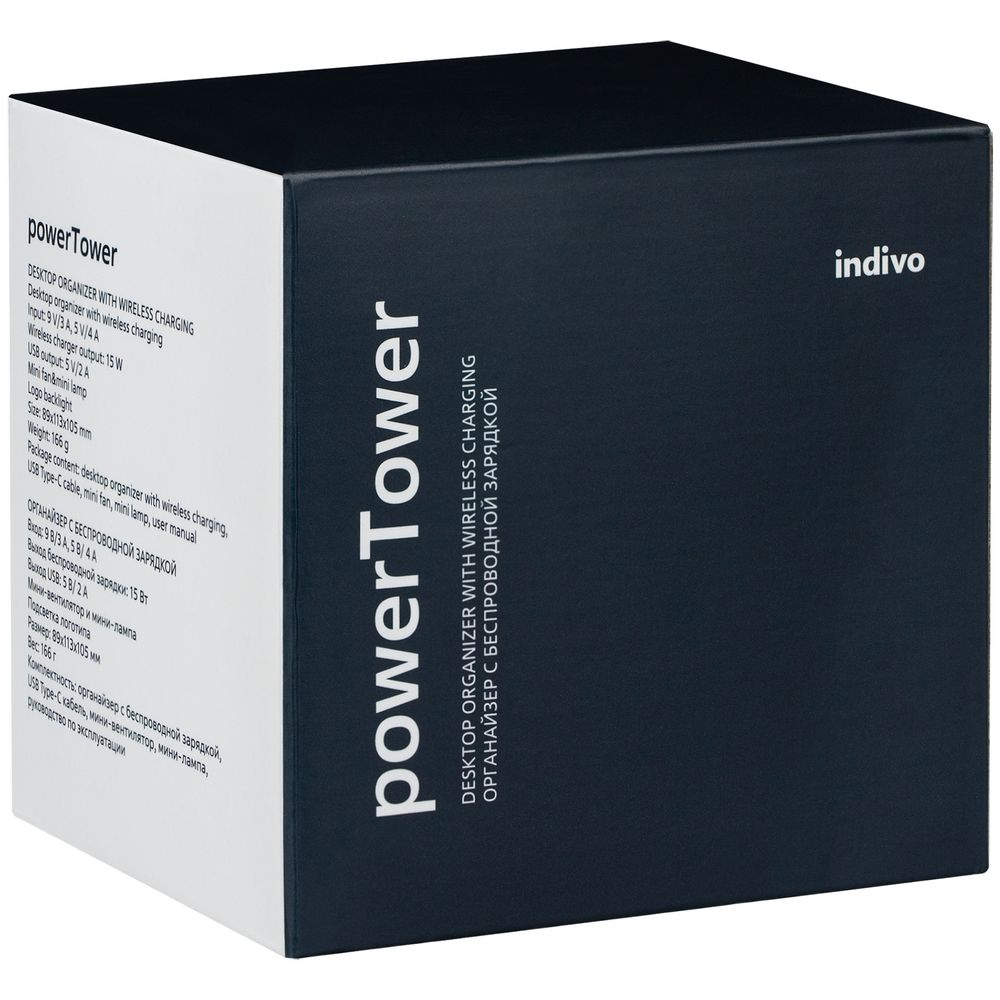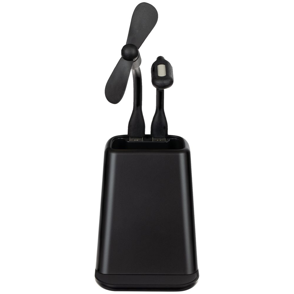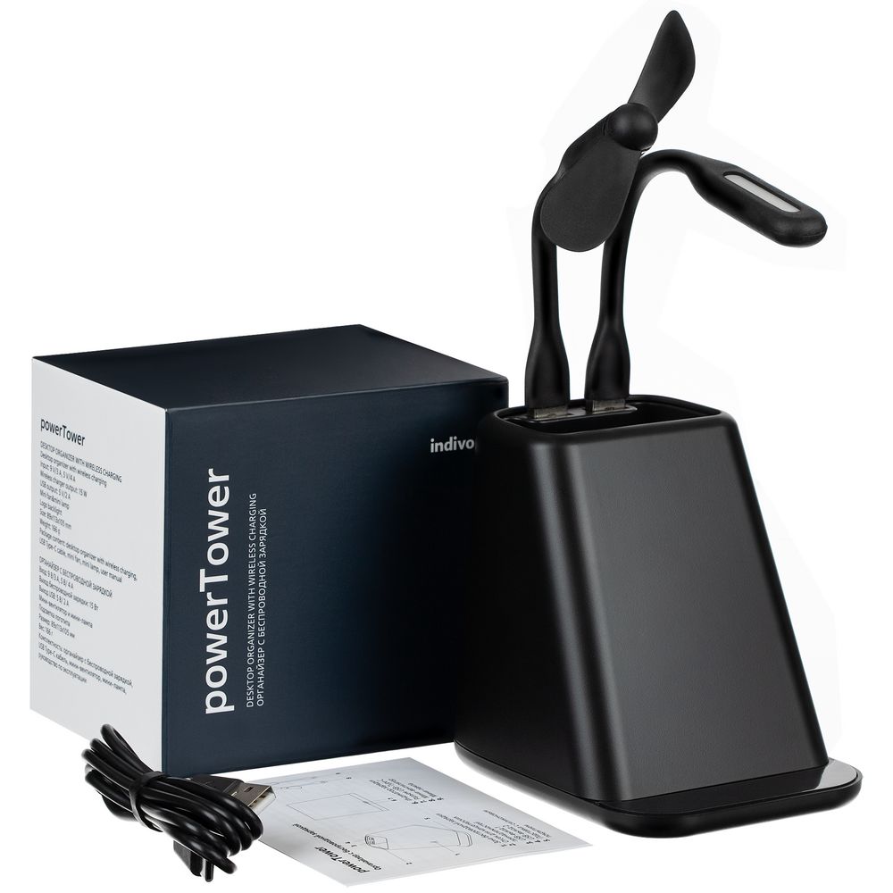 Настольный органайзер с зарядкой, лампой и вентилятором powerTower, черный купить оптом и в розницу с нанесением логотипа в Москве