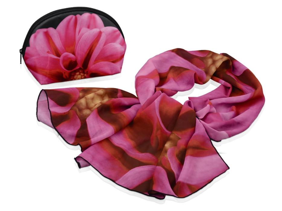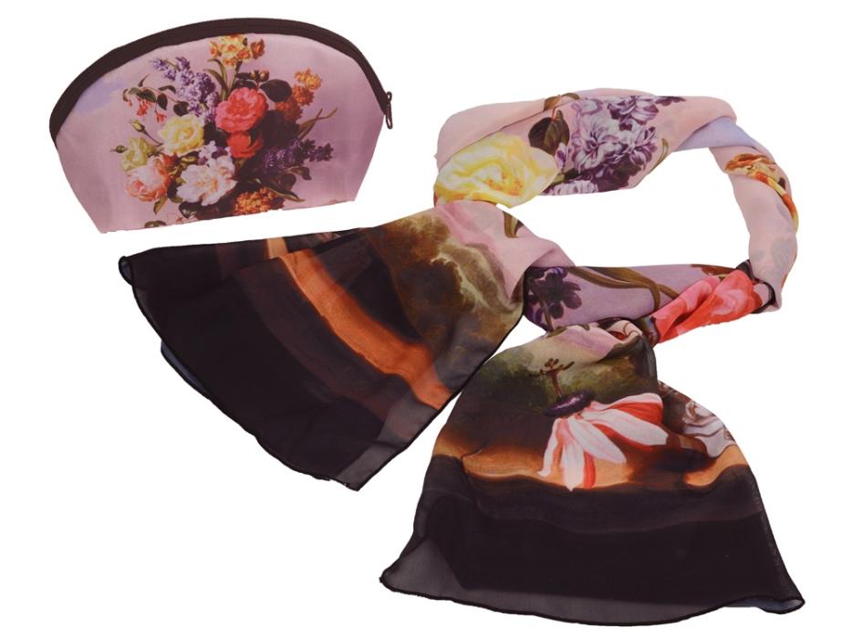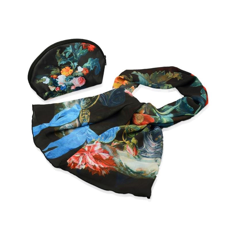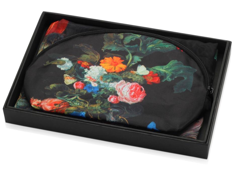 • Косметичка и шарф с цветочным принтом, выполненные в едином стиле, станут отличным дополнением к образу