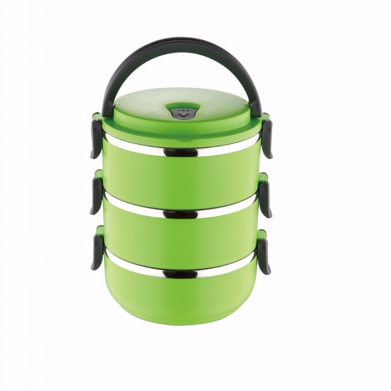 Если кто-то привык есть обеды из трех блюд и непременно желает их отведать даже на работе, то мы его порадуем – в данном ланч-боксе целых три герметичных и сохраняющих температуру отсека. Основа из нержавеющей стали покрыта для надежности и большей термоизоляции толстым слоем пластика. Веселые цвета корпуса поднимут настроение перед обедом.